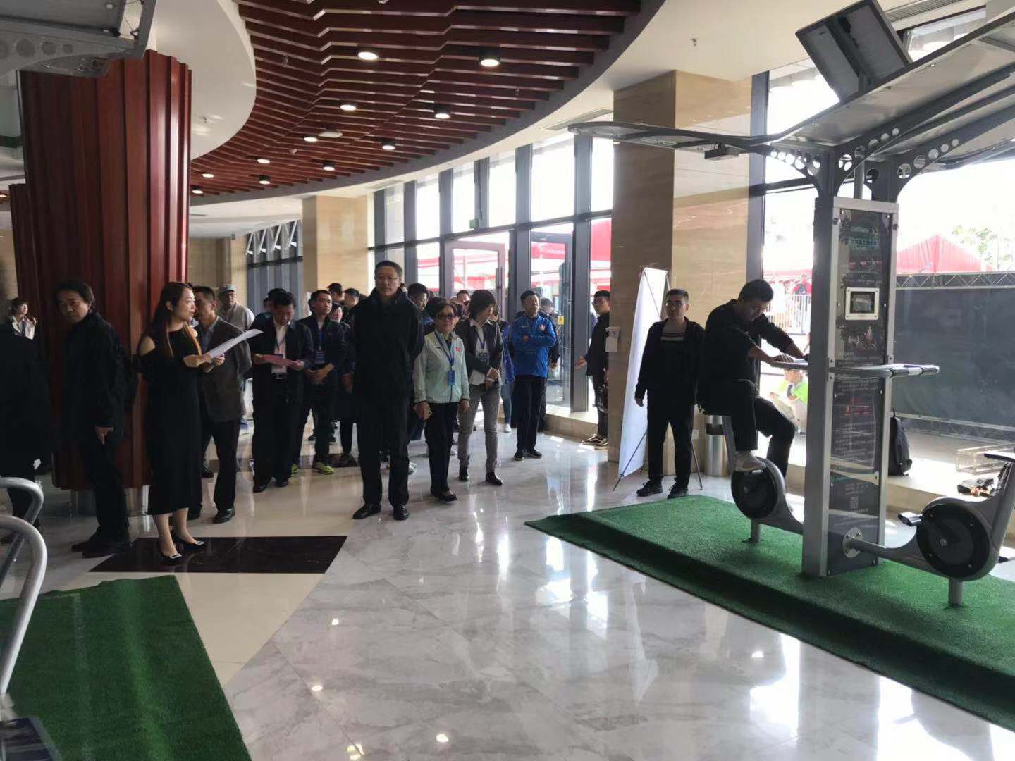 2019中国(德州)体育产业交流大会共分为四大板块,分别为中国体育用品业联合会(德州)体育产业论坛、重点企业参观调研、赛事、创新型体育产品展览。凯捷体育二代智能路径、爱动超级体测机、碳纤维自行车、碳纤维体操器材、负离子草坪等产品成为创新型体育产品成果展览上的焦点。