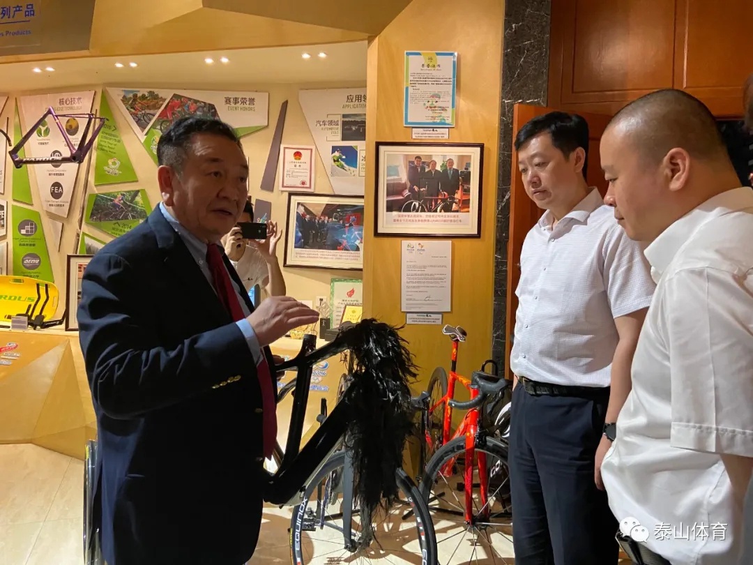 同日,菏泽市体育局局长史长华,第十三届全国政协教科卫体委员会委员、宋江武校校长樊庆彬一行莅临凯捷集团调研指导。在调研过程中,史长华局长对凯捷集团在党组织建设、竞技体育器材、人造草坪、碳纤维自行车、医养健康、冰雪装备以及在科技创新、体医融合、新旧动能转换等方面的工作给予了高度评价,双方针对市场开发、项目合作等事宜达成初步共识。