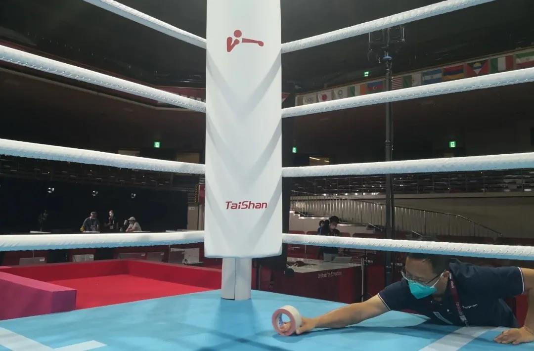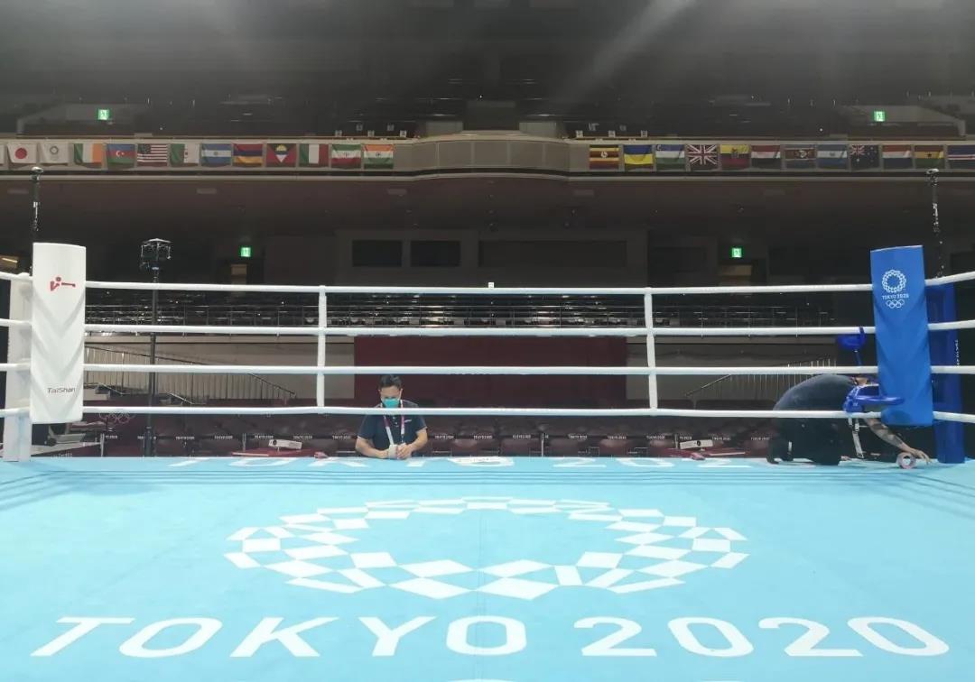 2021年7月21日,日本东京国技馆——奥运会拳击比赛馆。凯捷体育东京奥运会服务保障团队正在检查调试拳击器材。