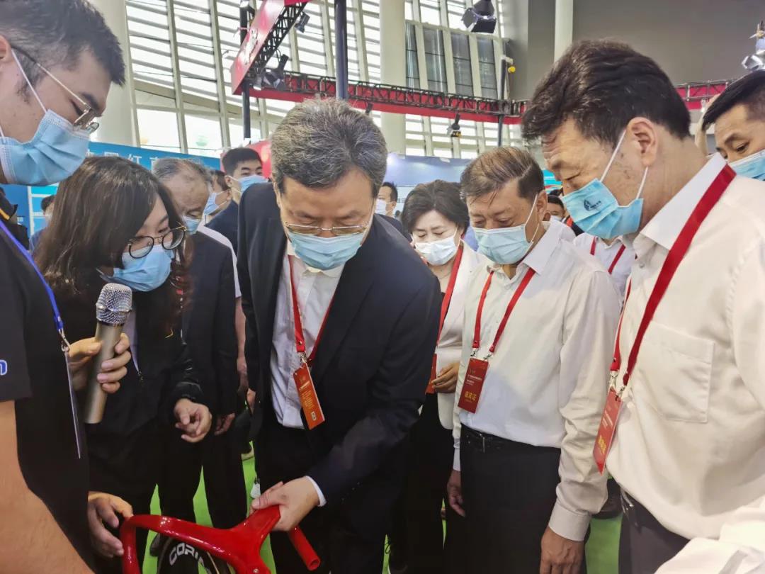国家体育总局体育器材装备中心副主任王平,临沂市委书记王安德,临沂市委副书记、市长任刚,临沂体育局局长刘艳芬等领导莅临凯捷体育展位参观