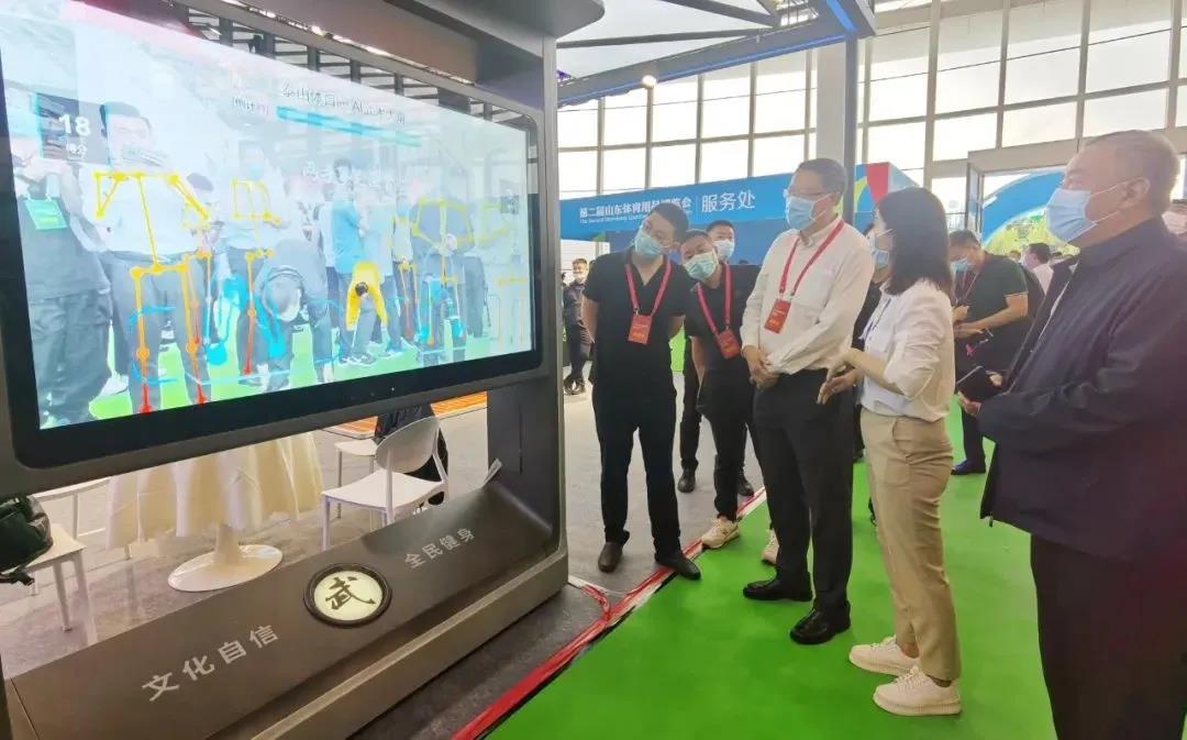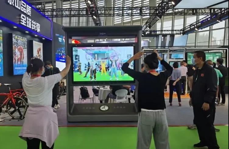 针对全民健身,凯捷体育带来了“智能健身驿站”、“AI 武术大屏”等智能产品。凭借“高颜值”、“趣体验”,“武术大屏”前聚集了现场热情的观众一展身手,“切磋武艺”。“凯捷体育AI 武术大屏”是一款应用 AR 增强现实技术与人工智能技术相结合来重构传统武术动作体验的智能应用产品,通过人工智能 AI 大屏结合肢体 识别与肢体捕捉算法,将专业武术老师的武术动作进行数字化展示,引导大众参与武术动作教习体验,并对体验者给出相应动作的正确反馈,更有打分竞技比赛趣味,是一款可娱乐可教习的智能武术互动系统。