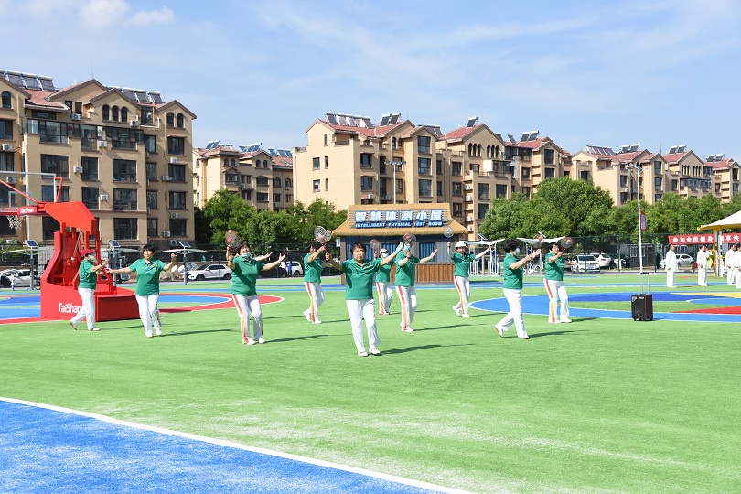 在场地铺设上,均采用凯捷新材料功能人造草铺设,全方位保证运动安全和环保;气膜式篮球综合运动馆,内部设置2片篮球场、6片乒乓球场地及1片网球场。网球场同时套线4个羽毛球场地。场馆内可以满足体育运动,体育教学及群众比赛需求。从场馆到运动超市、智慧体测小屋,全部采用可装配式建筑。